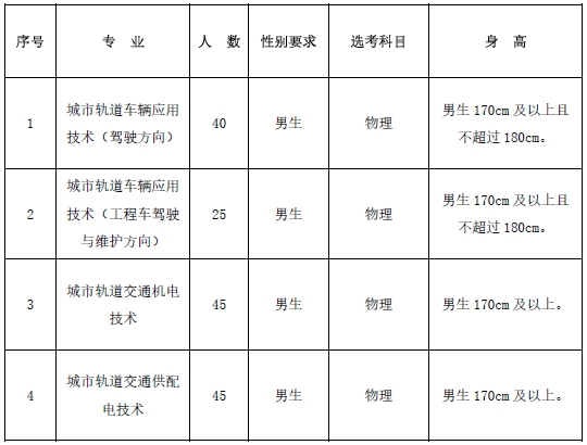 招收2023级高考成绩达到省控大专分数线以上的河北省生源考生;城市轨道交通车辆技术专业(电力/内燃机车驾驶方向)矫正视力5.0及以上,其他专业矫正视力4.8及以上,辩色力正常均无色盲、色弱等情况;五官端正,无身体缺陷,无纹身,无口吃,普通话良好,符合《公务员录用体检通用标准(试行)》的要求。
