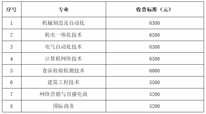 Beplay体育官方网站2025年高职(专科)单独招生和综合评价招生专业收费标准