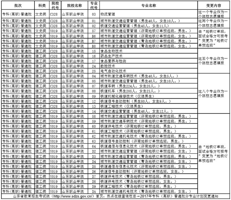 2017年Beplay体育官方网站专科(高职)普通批分专业计划变更通知