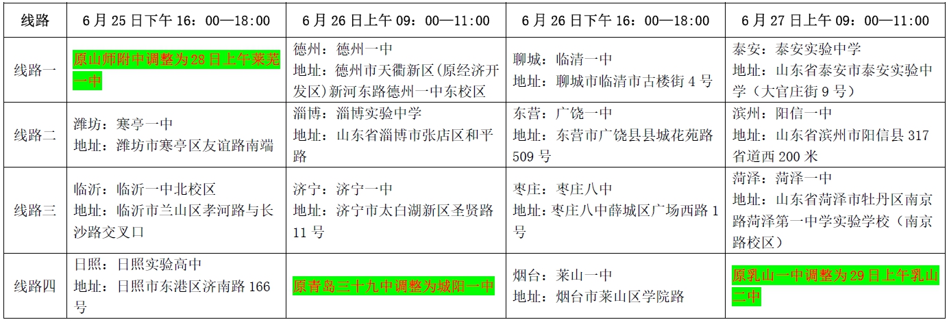 *线路四第二站,26日上午举办的青岛三十九中场,与城阳一中要举行的咨询会合办,调整为在城阳一中举办,时间不变。